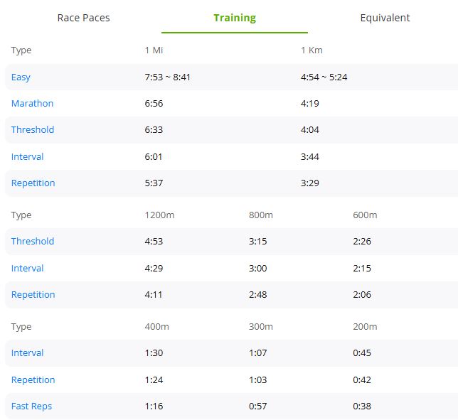 For example, if you ran a 1:27:11 HM in October that would give you a VDOT of 52.9. Equivalent to a 3:01:56 marathon. With guided training paces for workouts. If you need to do a Threshold run, 6:33/mile (4:04/km) is the pace that you should target.